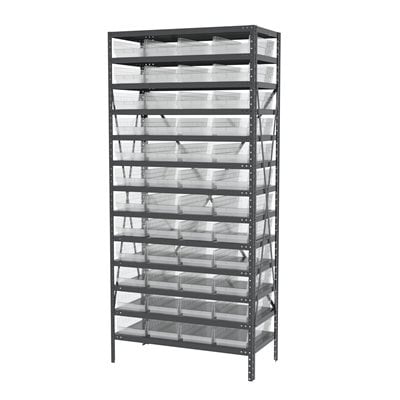 - CAPACITY - Shelving units have 355 to 600 lb. weight capacity per shelf when assembled and installed per instructions. Per shelf weight capacity: 12? x 36?: 500 lbs.; 18? x 36?: 550 lbs.; 24? x 36?: 550 lbs.