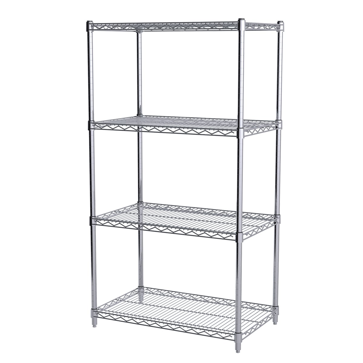 Wire Shelving 4-Shelf Starter Units come with 4 shelves, 4 posts and 8 S-Hooks for extending shelving end-to-end, back-to-back or 90 degrees. Posts include leveling feet. Make a mobile unit by adding AWPCAST4 or AWPCAST5Y.