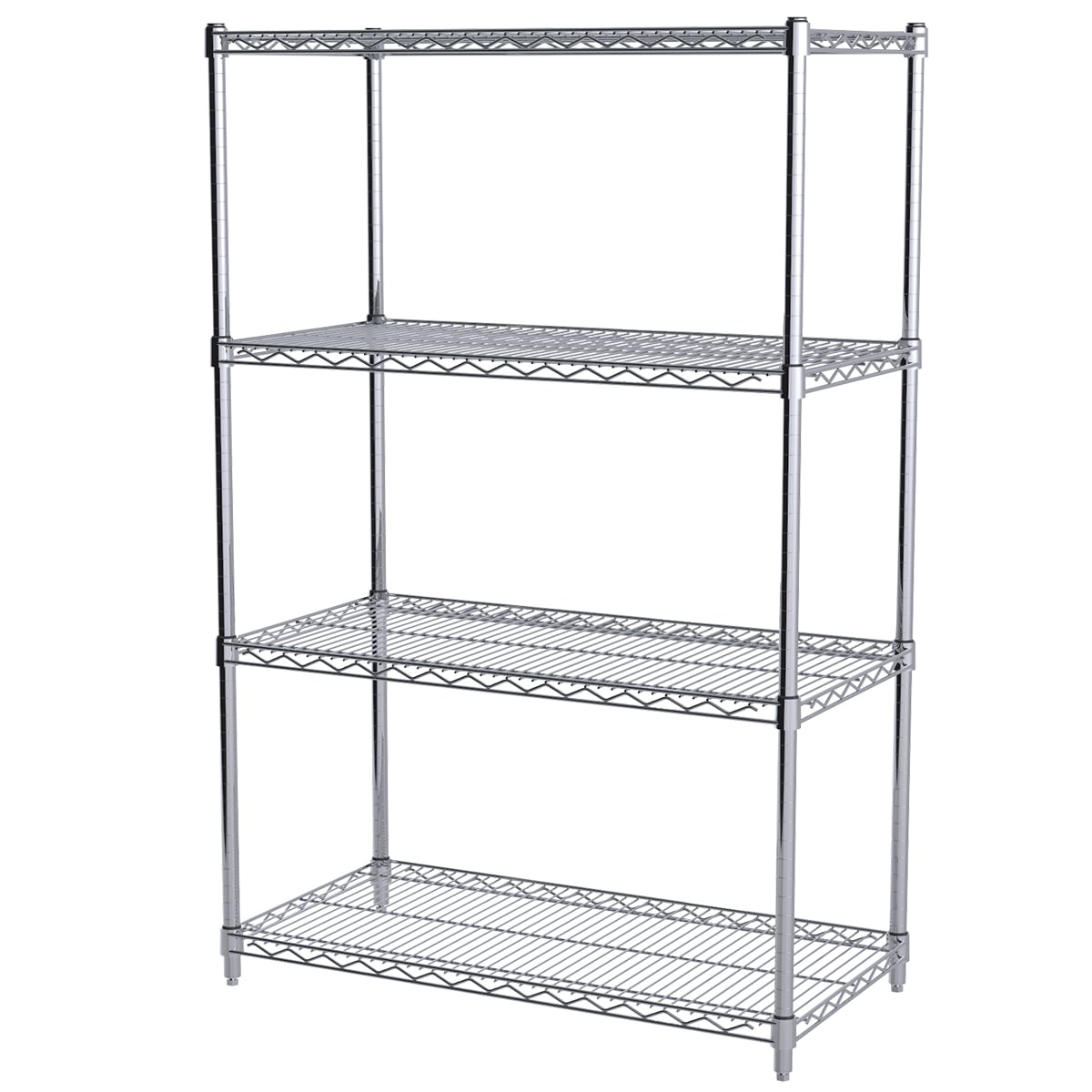 Wire Shelving 4-Shelf Starter Units come with 4 shelves, 4 posts and 8 S-Hooks for extending shelving end-to-end, back-to-back or 90 degrees. Posts include leveling feet. Make a mobile unit by adding AWPCAST4 or AWPCAST5Y.