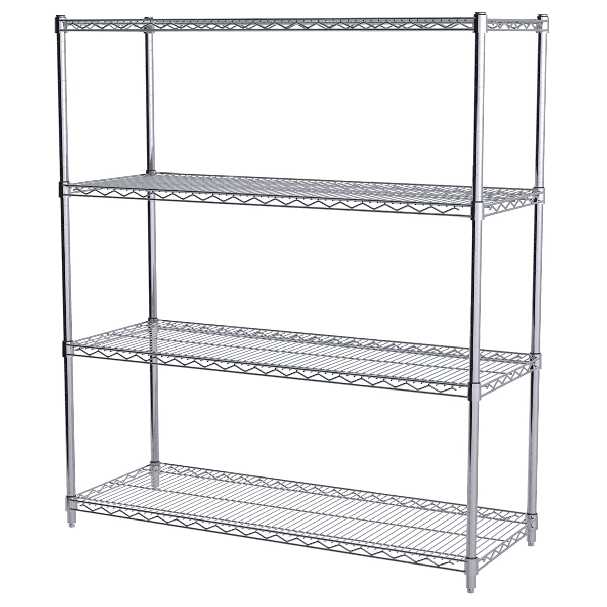 Wire Shelving 4-Shelf Starter Units come with 4 shelves, 4 posts and 8 S-Hooks for extending shelving end-to-end, back-to-back or 90 degrees. Posts include leveling feet. Make a mobile unit by adding AWPCAST4 or AWPCAST5Y.