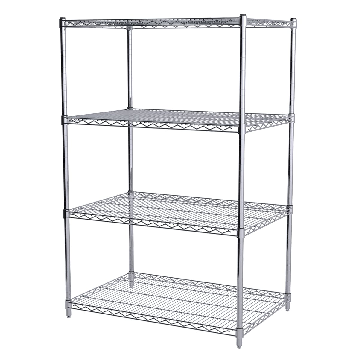 Wire Shelving 4-Shelf Starter Units come with 4 shelves, 4 posts and 8 S-Hooks for extending shelving end-to-end, back-to-back or 90 degrees. Posts include leveling feet. Make a mobile unit by adding AWPCAST4 or AWPCAST5Y.