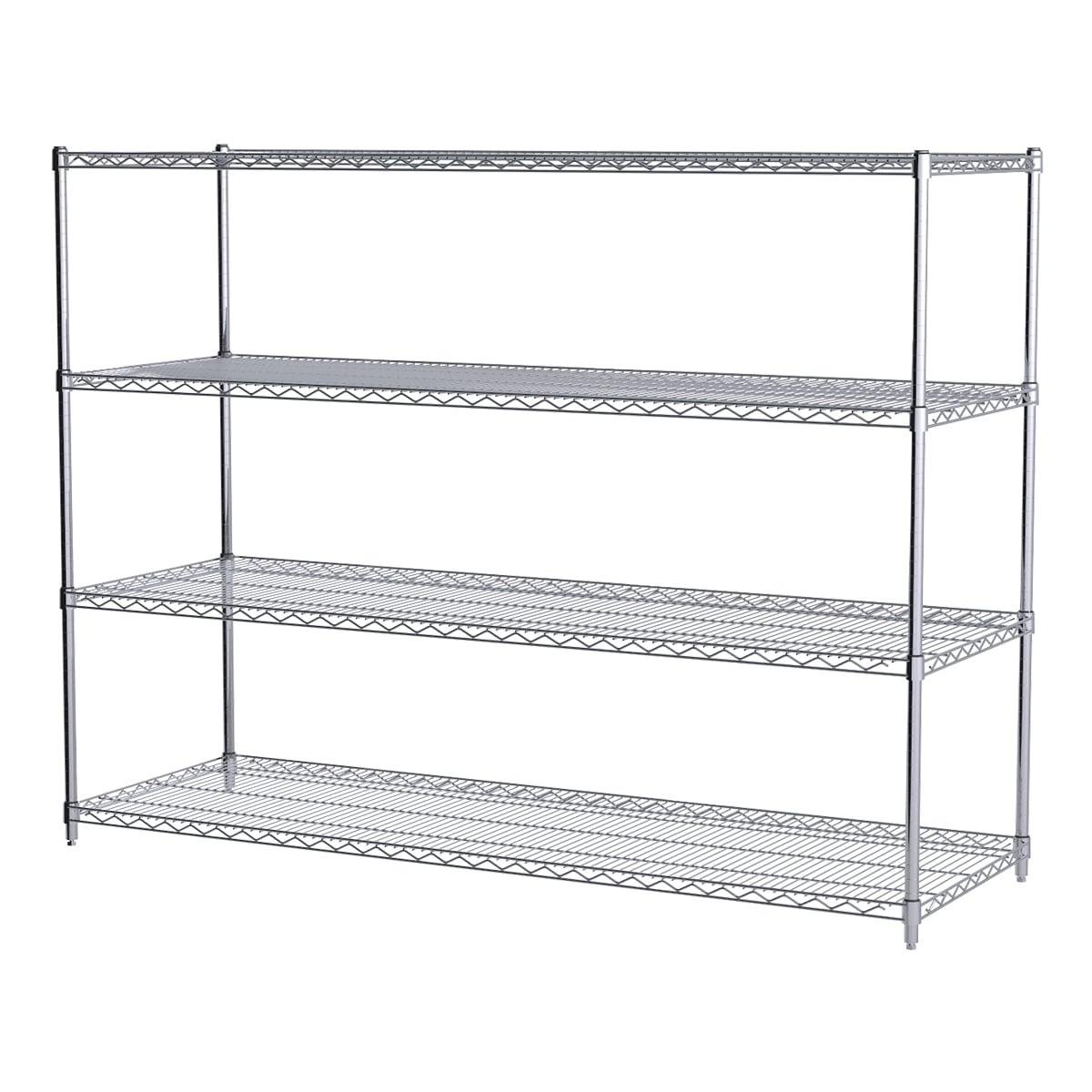 Wire Shelving 4-Shelf Starter Units come with 4 shelves, 4 posts and 8 S-Hooks for extending shelving end-to-end, back-to-back or 90 degrees. Posts include leveling feet. Make a mobile unit by adding AWPCAST4 or AWPCAST5Y.