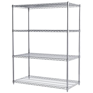 Wire Shelving 4-Shelf Starter Units come with 4 shelves, 4 posts and 8 S-Hooks for extending shelving end-to-end, back-to-back or 90 degrees. Posts include leveling feet. Make a mobile unit by adding AWPCAST4 or AWPCAST5Y.