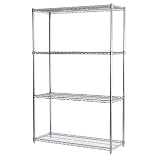 Wire Shelving 4-Shelf Starter Units come with 4 shelves, 4 posts and 8 S-Hooks for extending shelving end-to-end, back-to-back or 90 degrees. Posts include leveling feet. Make a mobile unit by adding AWPCAST4 or AWPCAST5Y.