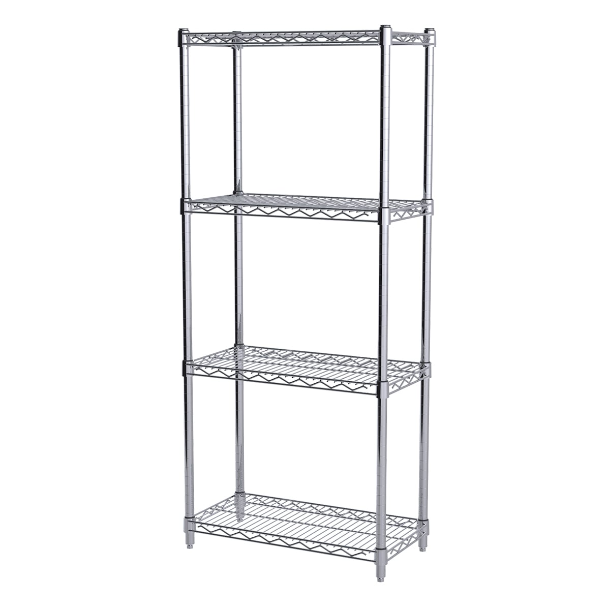 Wire Shelving 4-Shelf Starter Units come with 4 shelves, 4 posts and 8 S-Hooks for extending shelving end-to-end, back-to-back or 90 degrees. Posts include leveling feet. Make a mobile unit by adding AWPCAST4 or AWPCAST5Y.