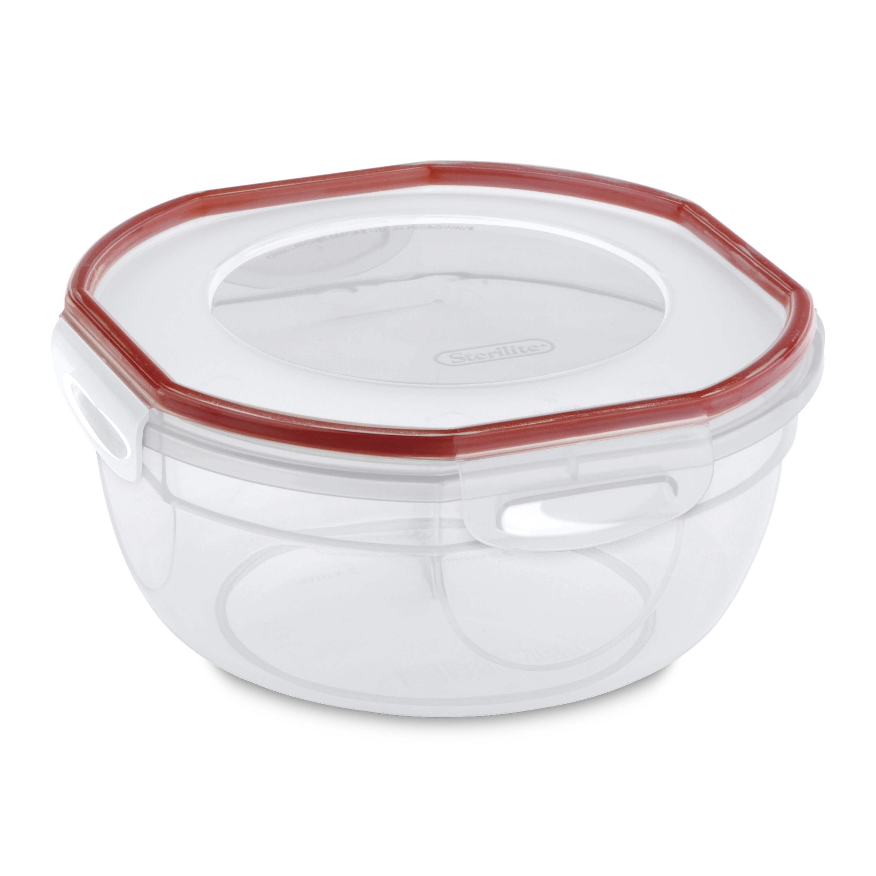 | 03948604 /Asset/03948604-Beauty.jpg | N/A Ultra-Seal™ 4.7 Quart/4.4 Liter Bowl | Cube Size N/A 1.2 ft³0.034 m³ | Item Diameter N/A 10 1/4 in26 cm | Item Height N/A 4 3/4 in12.1 cm | Solid Color Pack N/A Clear Lid and Base with Rocket Red Gasket |